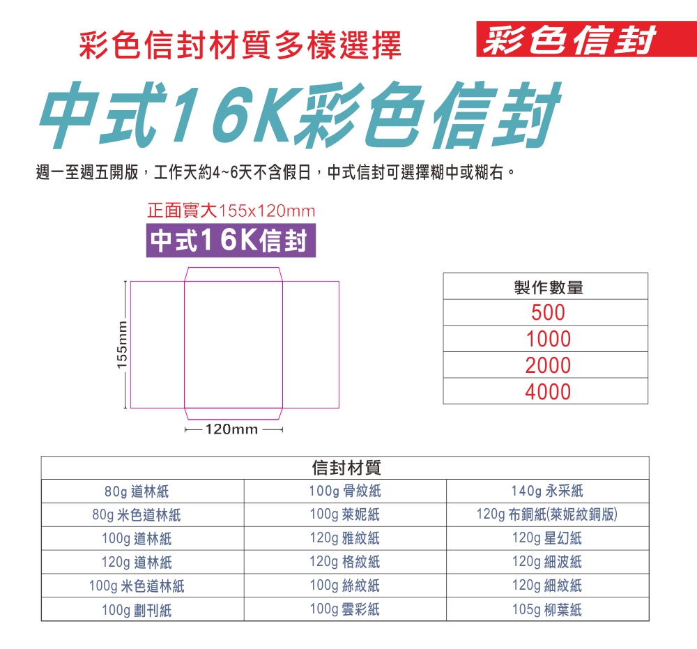 首頁 > 產品指南 > 彩色信封 > 彩色信封[中式16K]