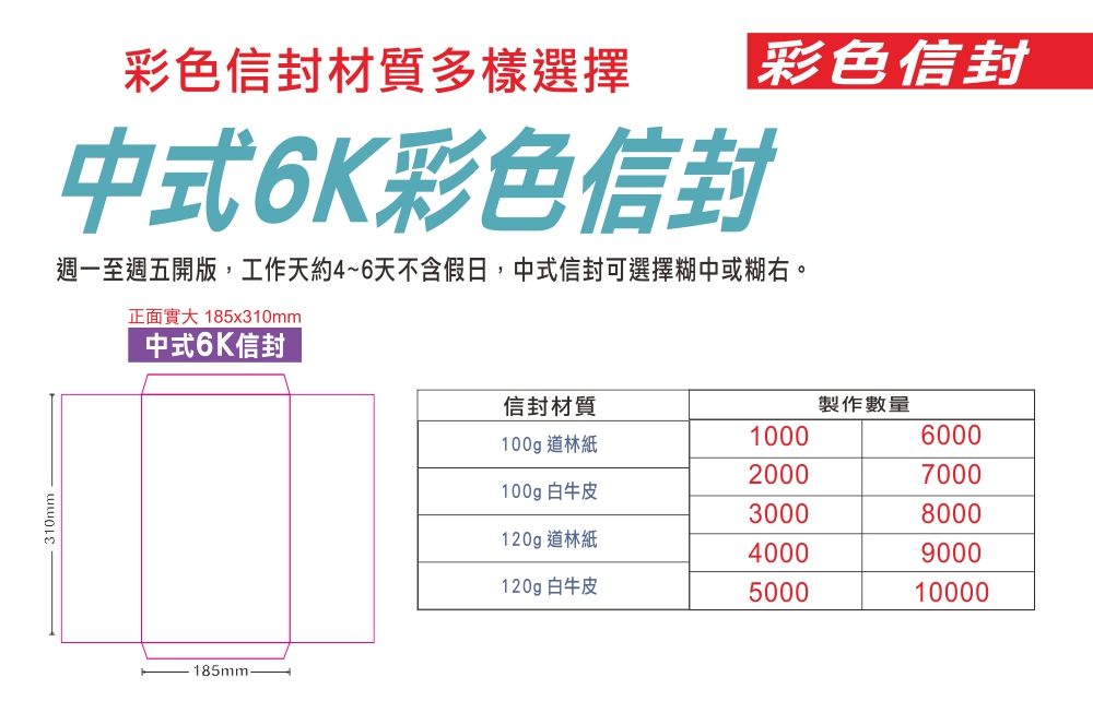 首頁 > 產品指南 > 彩色信封 > 彩色信封[中式6K]