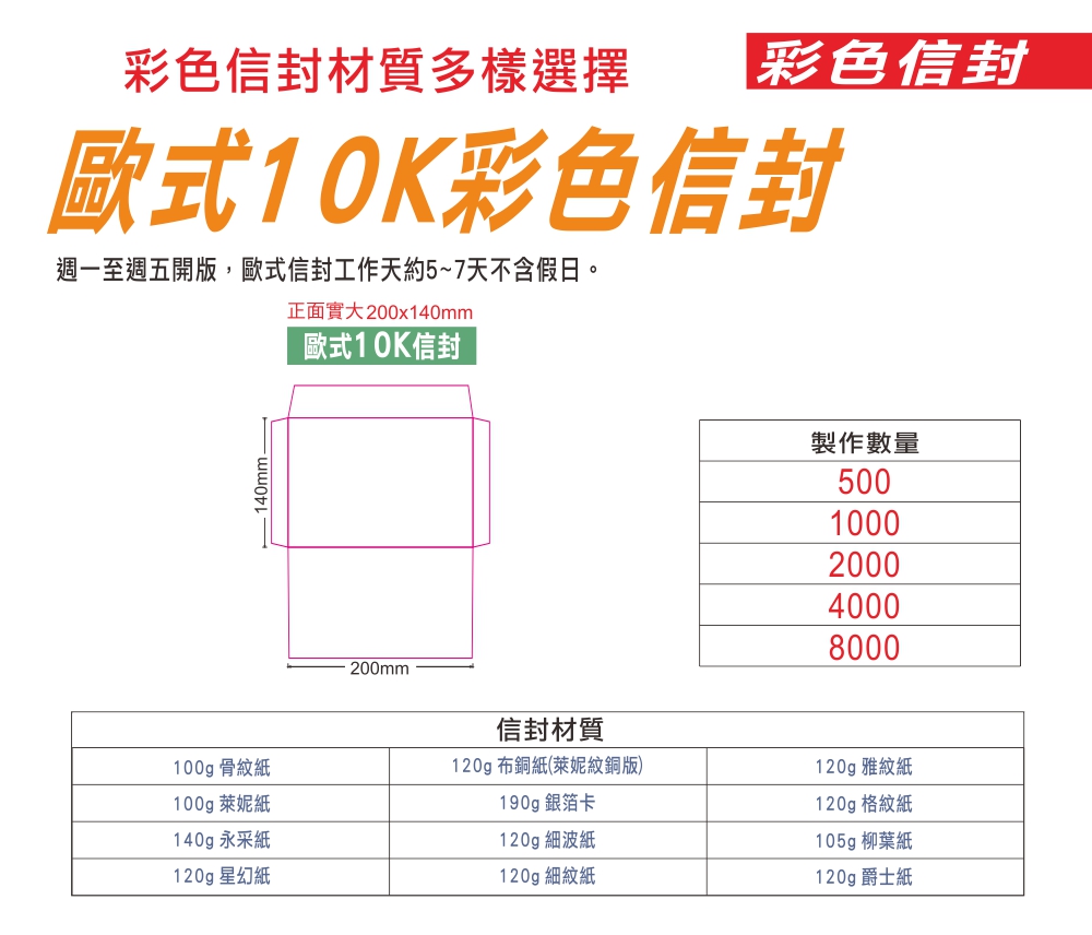 首頁 > 產品指南 > 彩色信封 > 彩色信封[歐式10K]