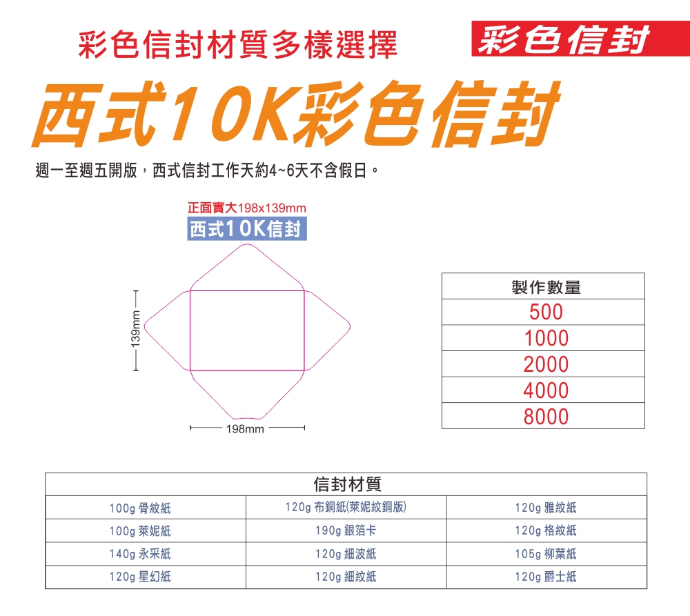 首頁 > 產品指南 > 彩色信封 > 彩色信封[西式10K]