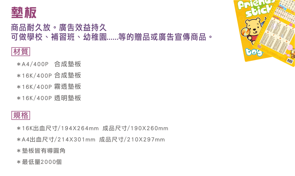 首頁 > 產品指南 > 墊板