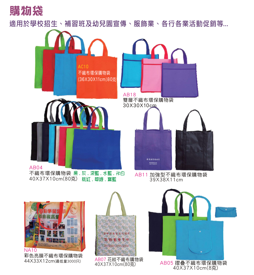 首頁 > 產品指南 > 購物袋